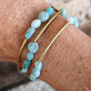 Pulsera Triple Piedra Brass – Oro, AMAZONITA