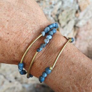 Pulsera Triple Piedra Brass – Oro, LARIMAR VERDE