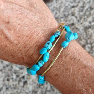 Pulsera Triple Piedra Brass – Oro, TURQUESA AFRICANA