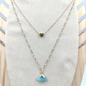 Collar Doble Dije y Piedra Aquamarina Oro