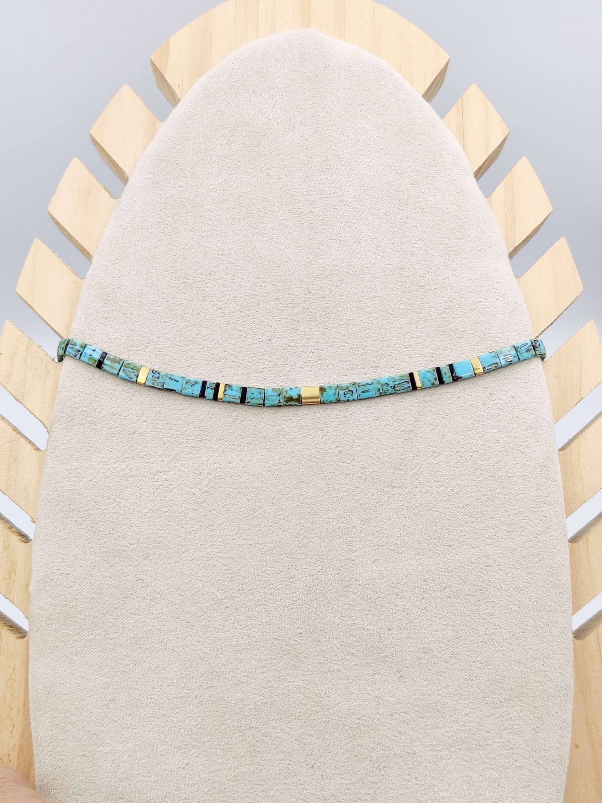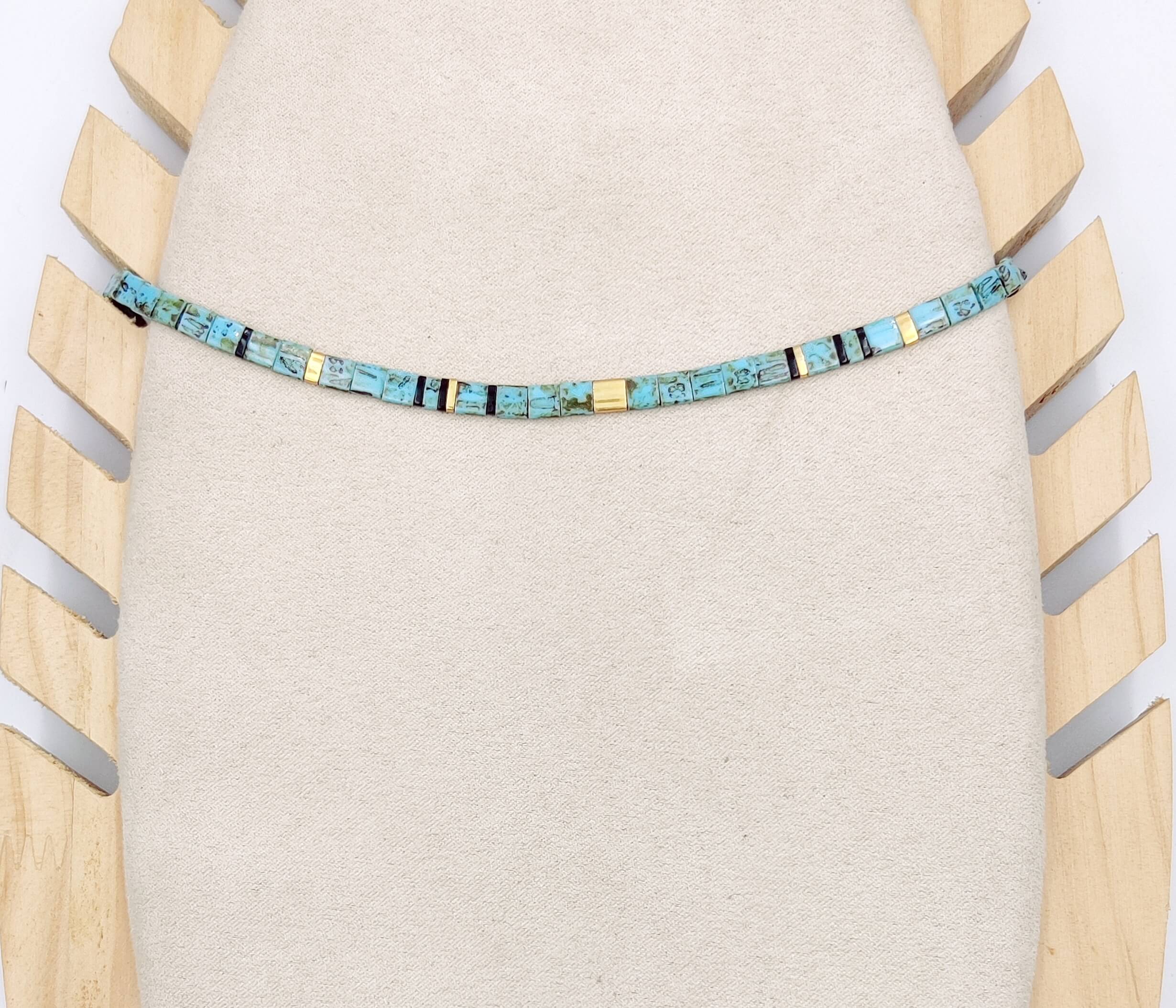 Collar choker de cristal japonés con cadena de alargue 7 cm en acero inoxidable con baño de oro 18 quilates