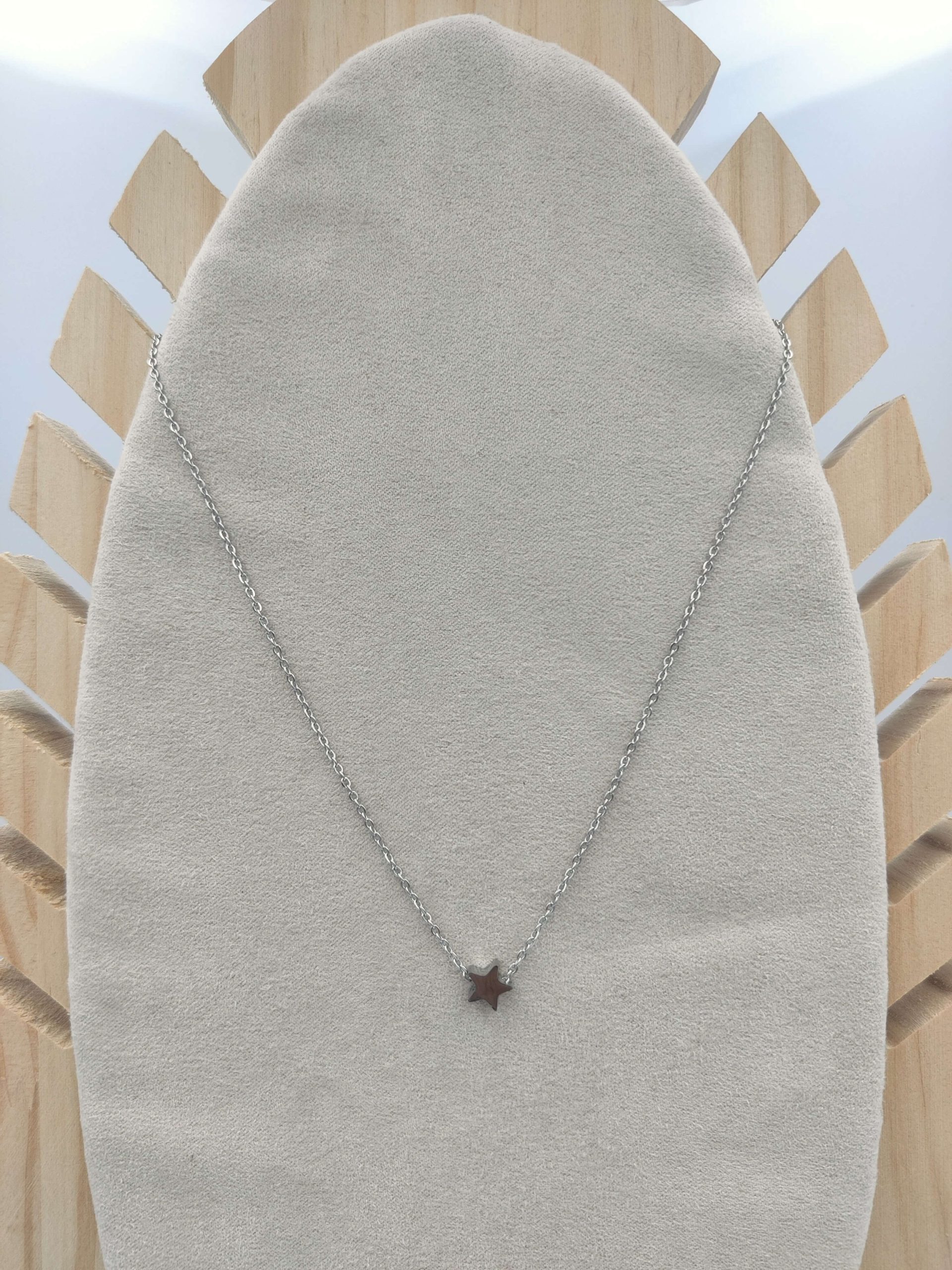 Collar Estrella con dije y cadena en acero inoxidable con y sin baño de oro 18 quilates.