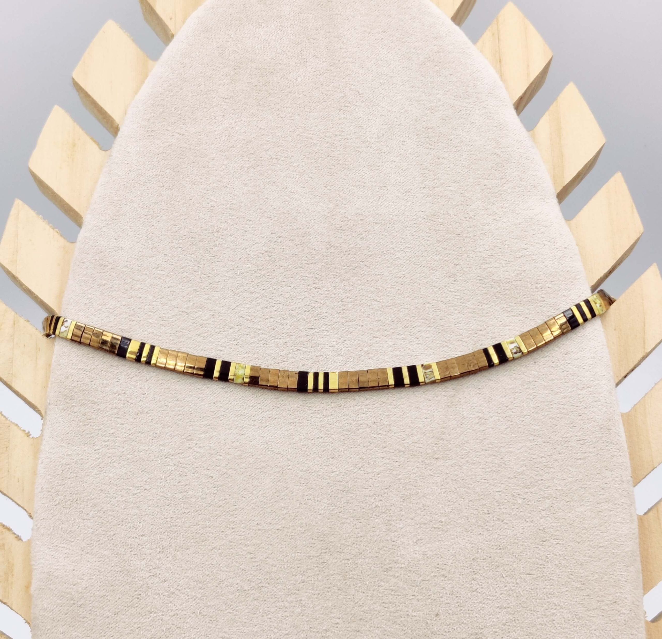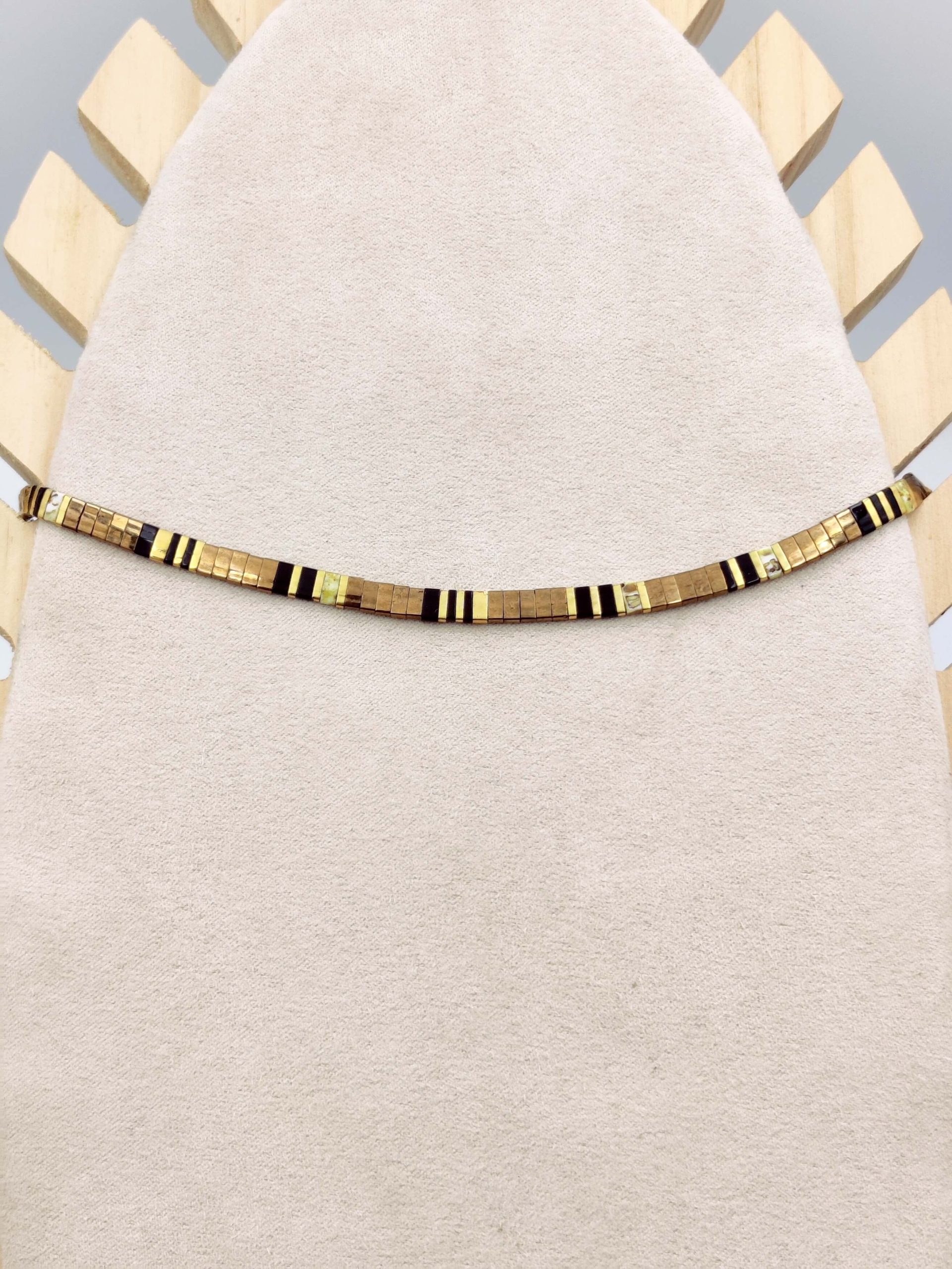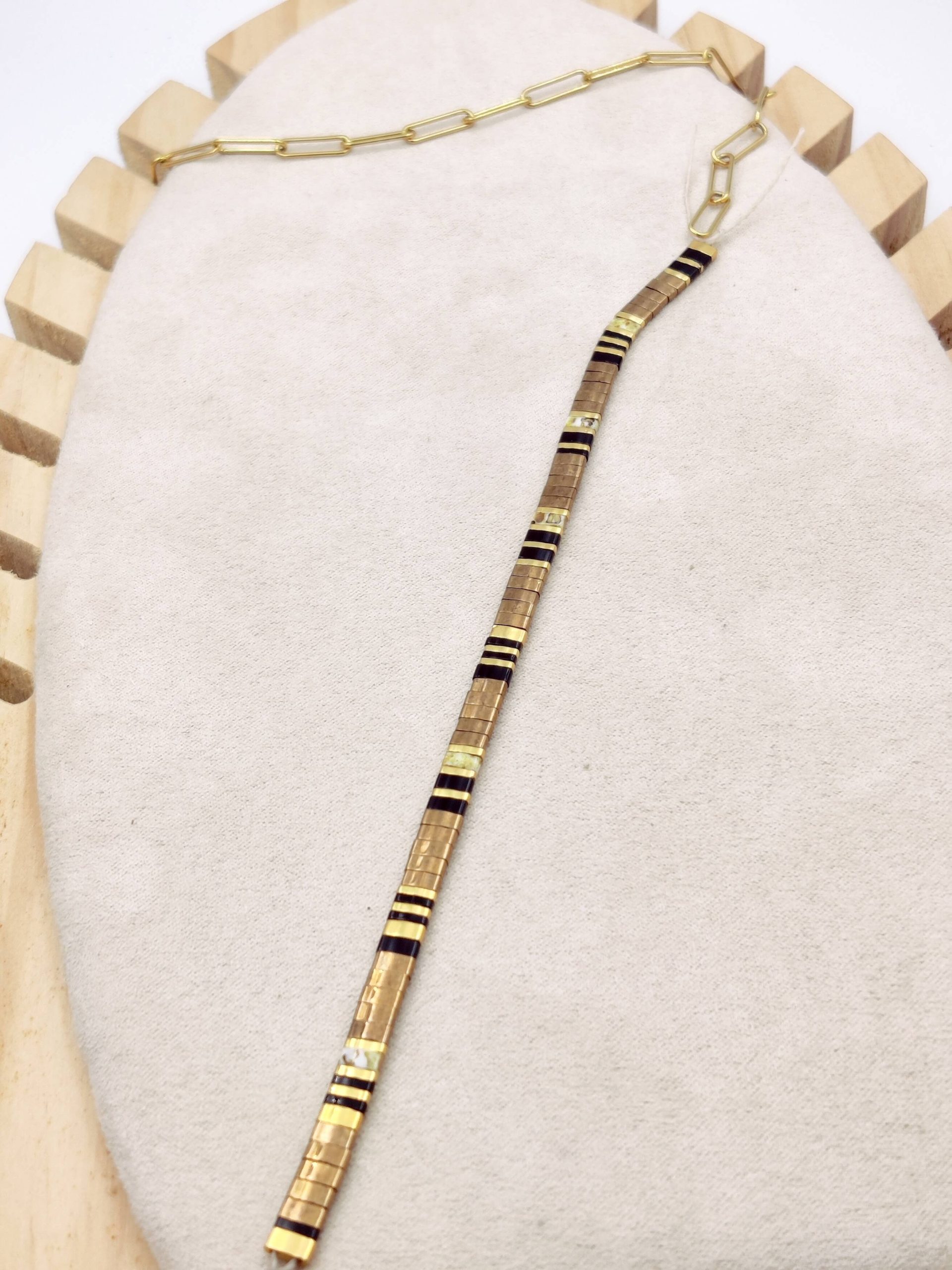 Collar cristal japonés con mitad de cadena eslabones en acero inoxidable con baño de oro 18 quilates