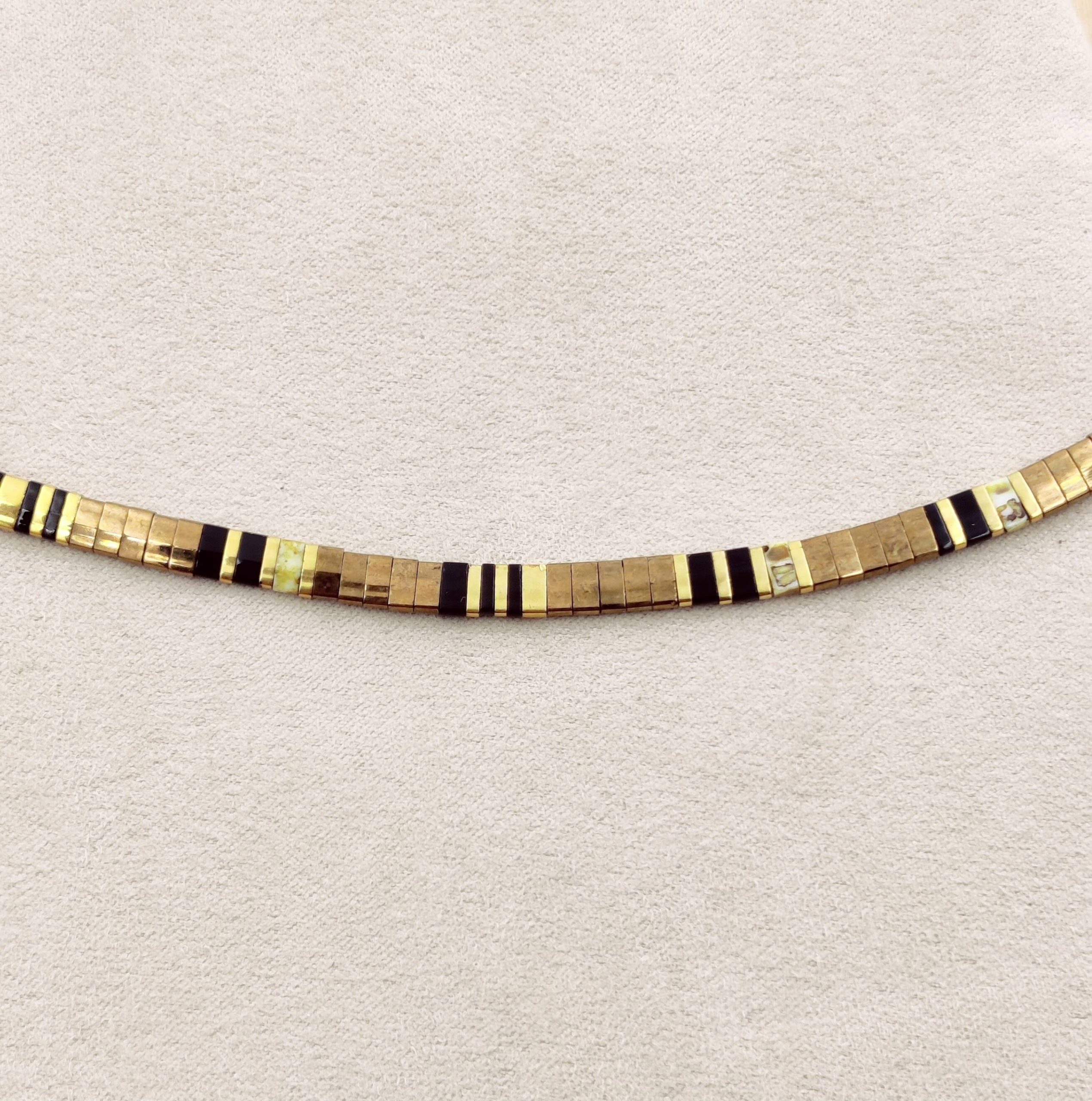Collar cristal japonés con mitad de cadena eslabones en acero inoxidable con baño de oro 18 quilates y extra piezas de cristal japonés con baño de oro 24 quilates