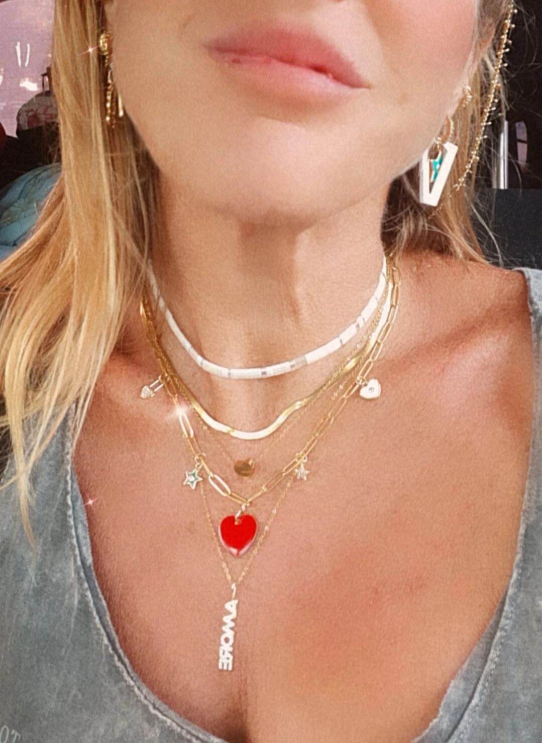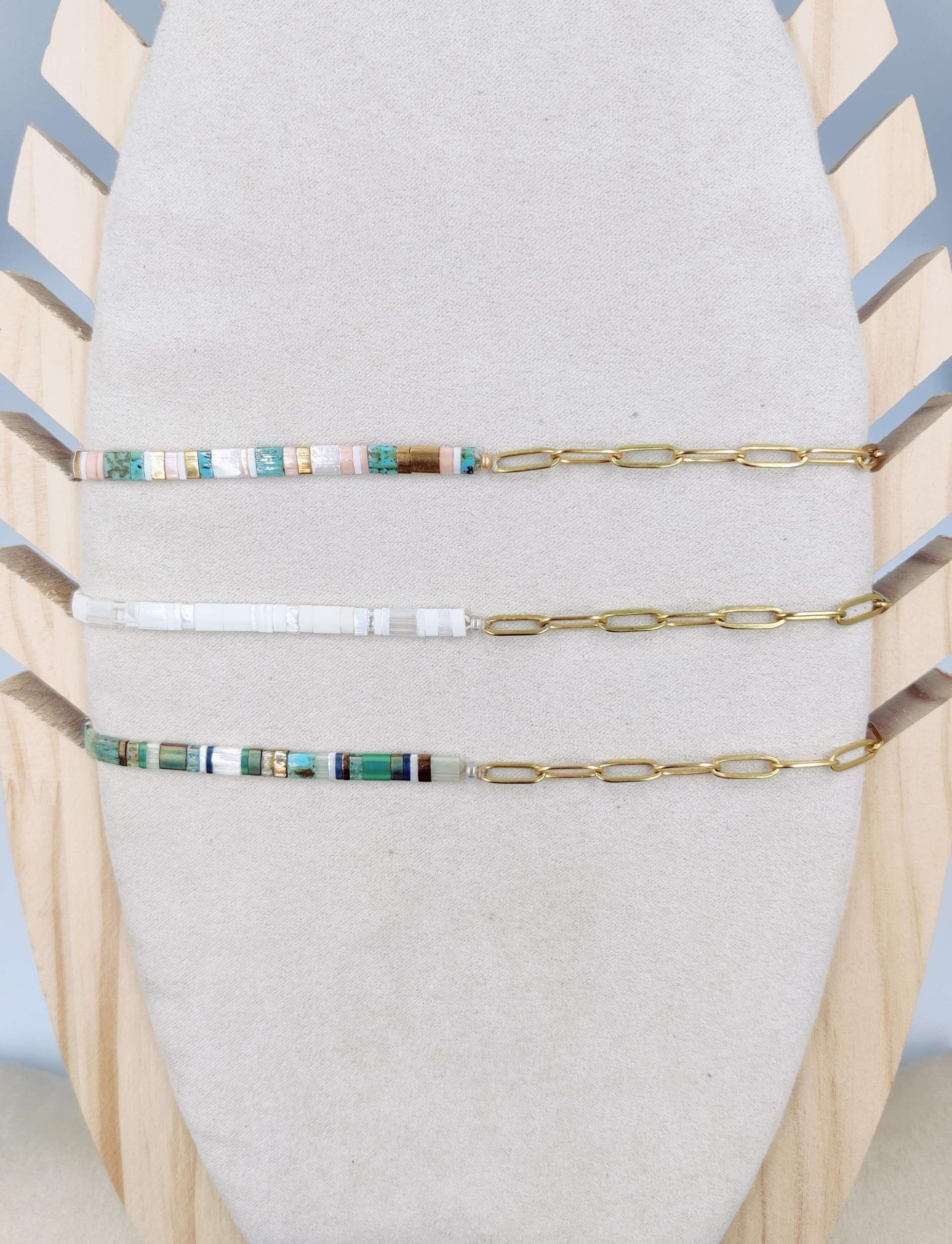 Collar cristal japonés con mitad de cadena eslabones en acero inoxidable con baño de oro 18 quilates