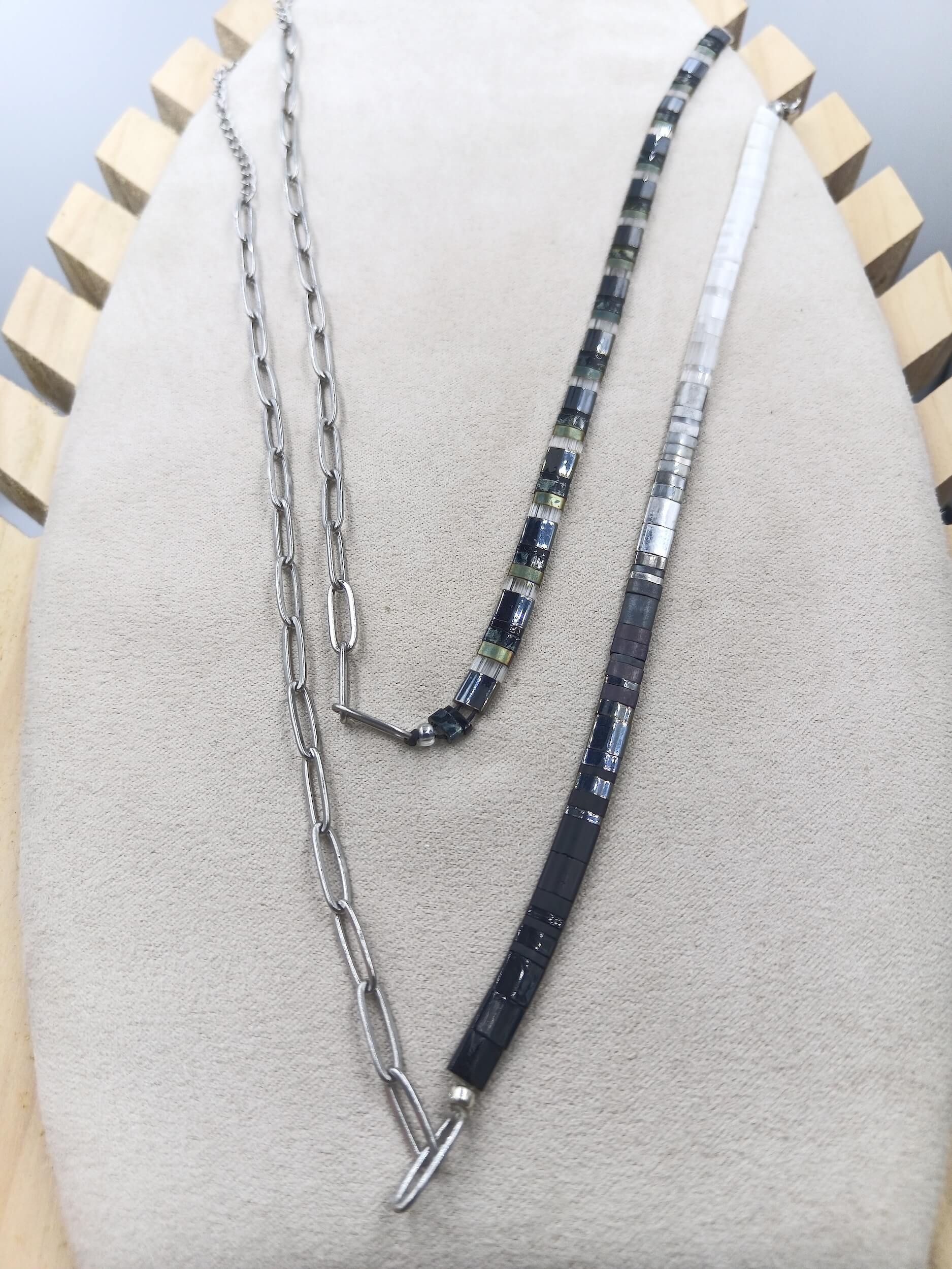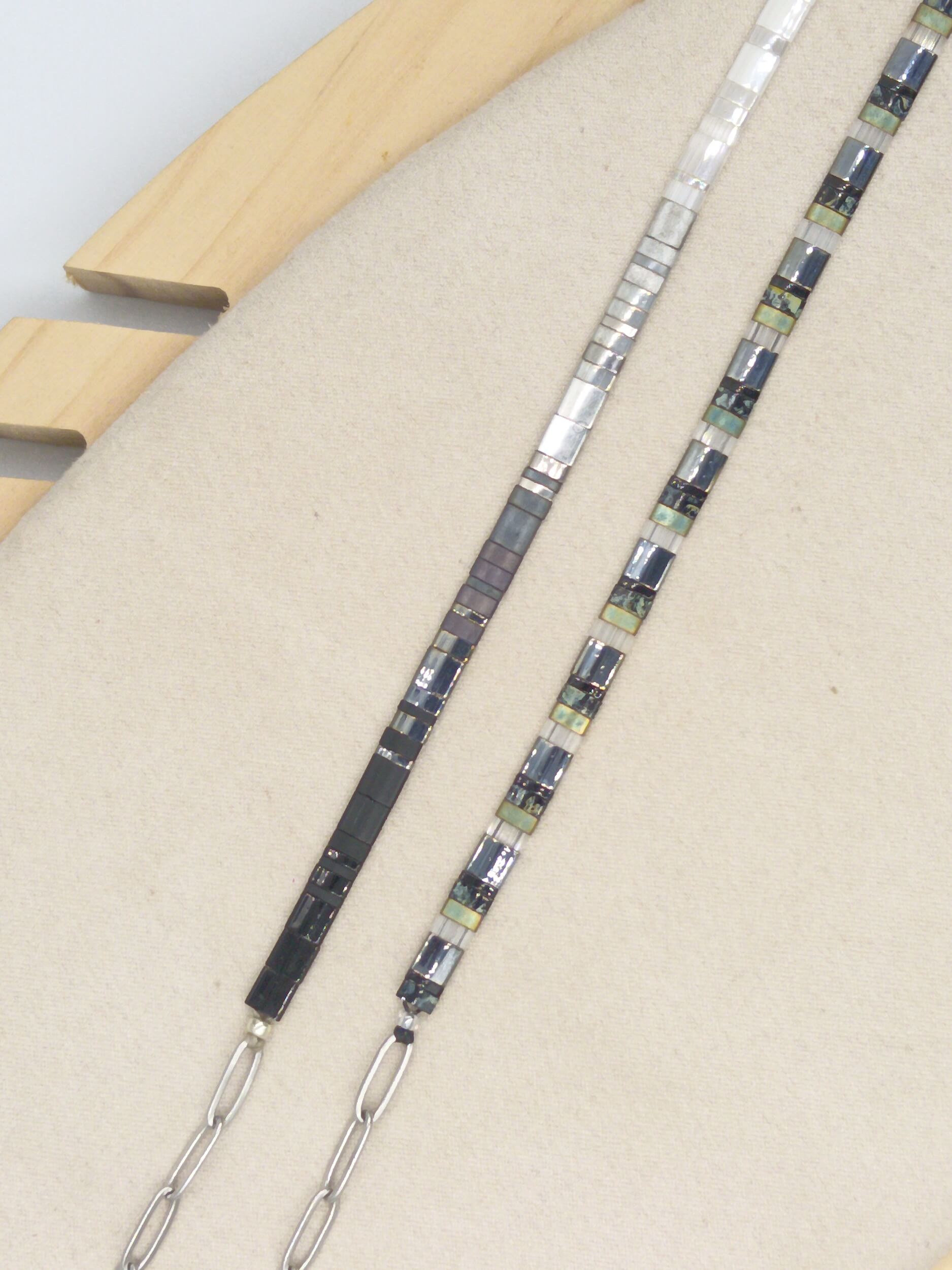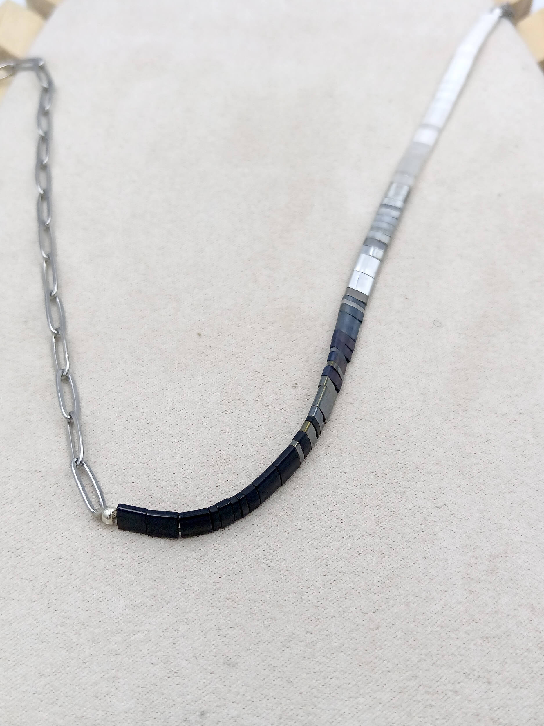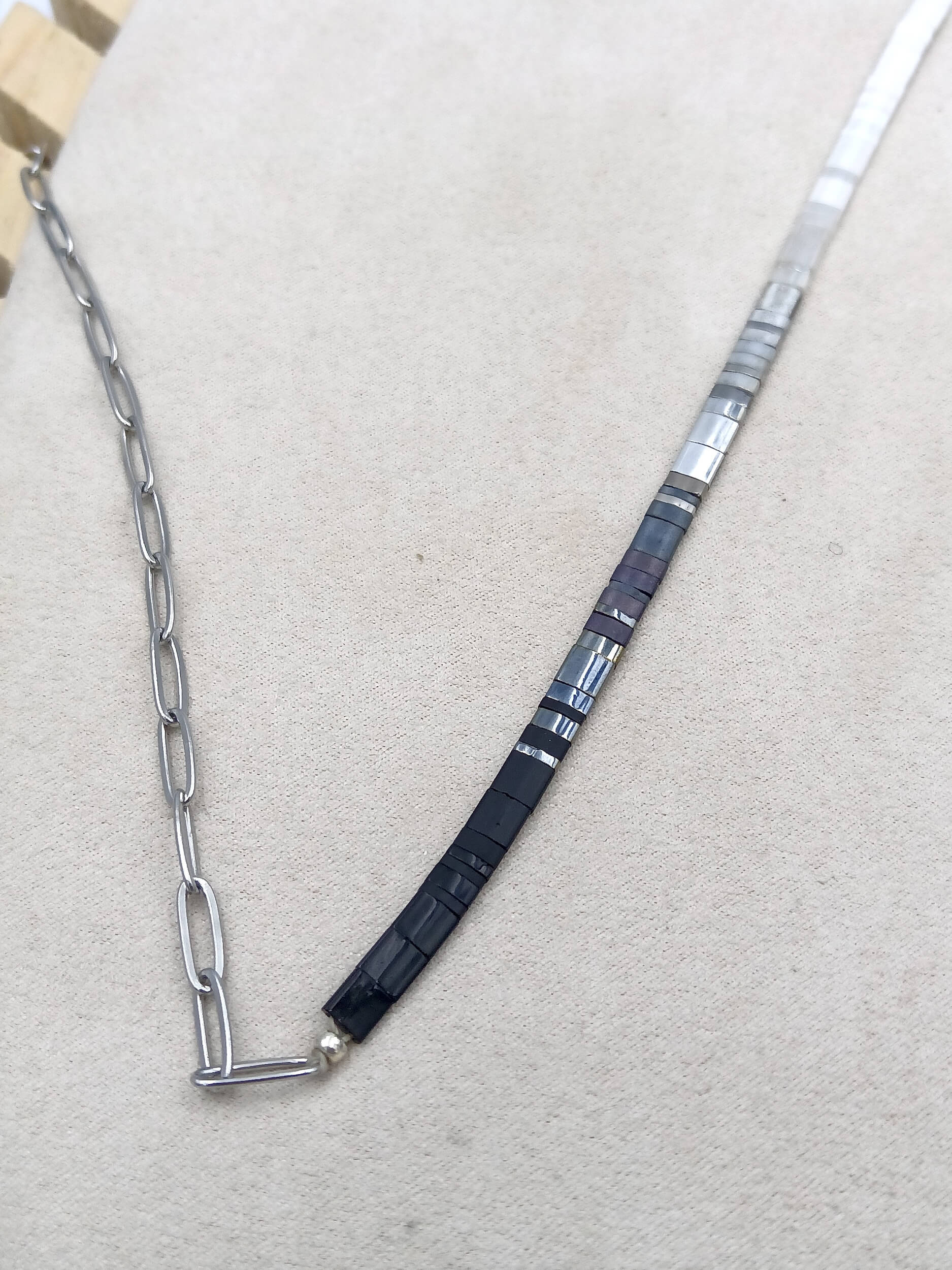 Collar Half Gris Degrade Cristal Japonés Plateado