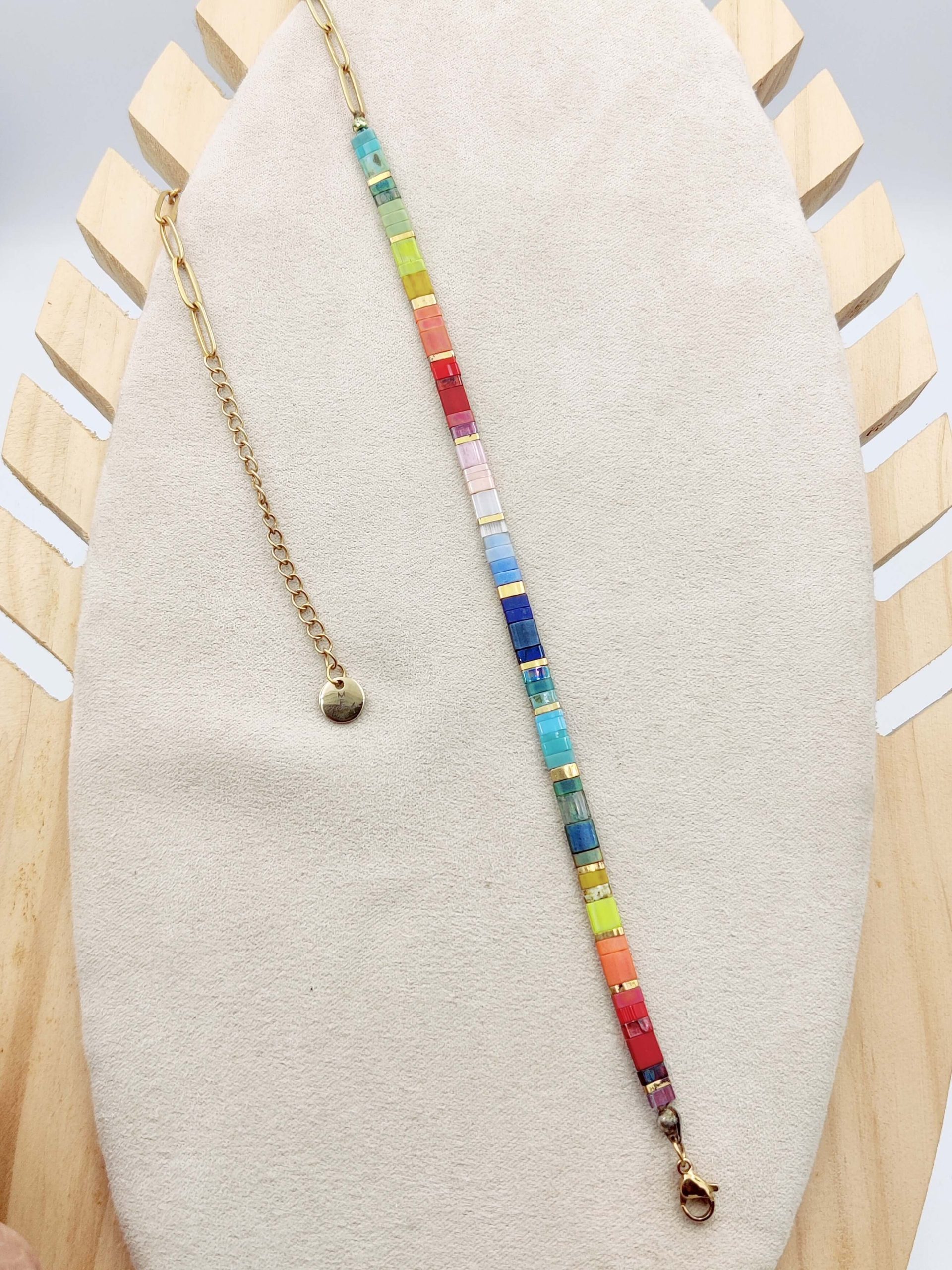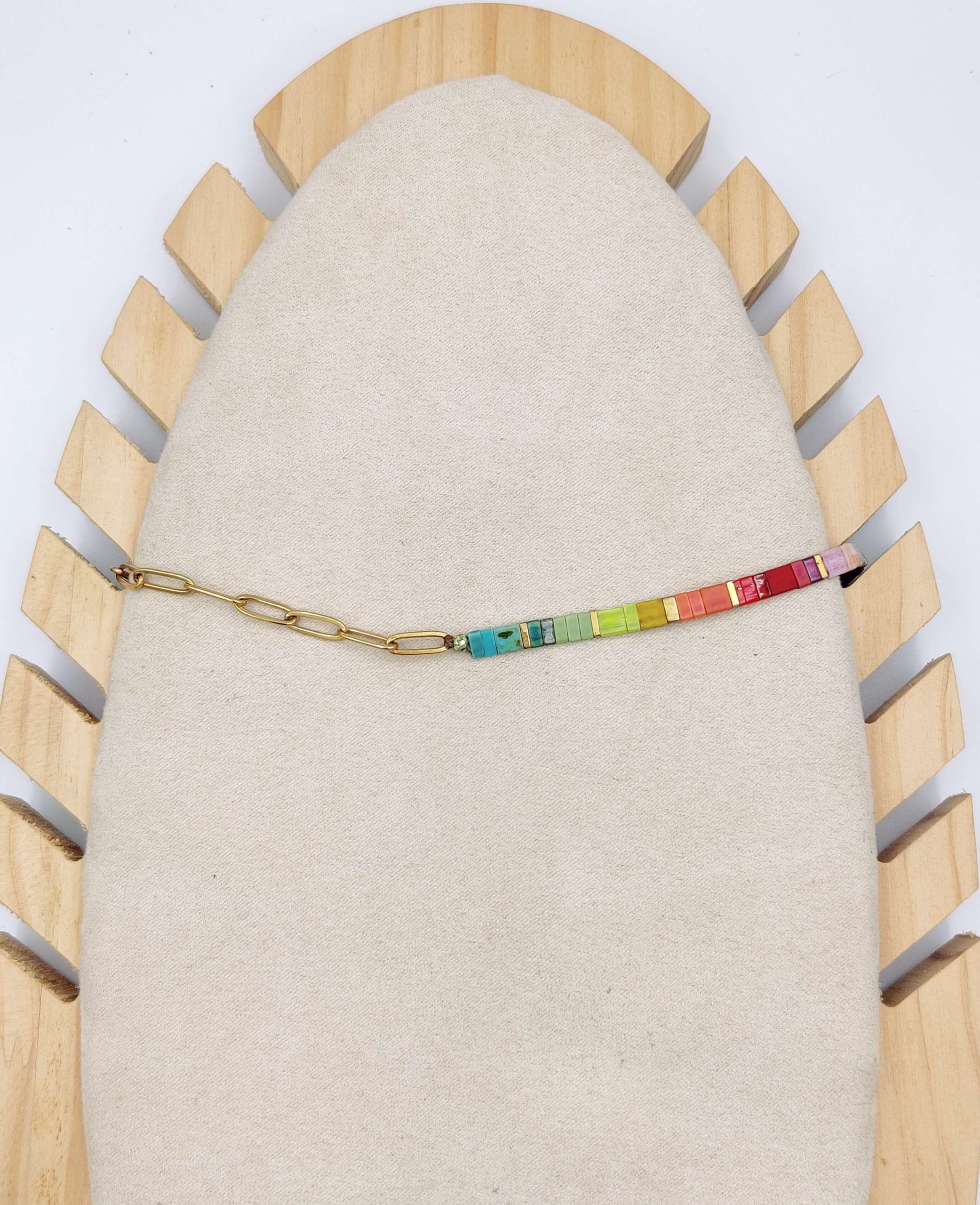 Collar cristal japonés con mitad de cadena eslabones en acero inoxidable con baño de oro 18 quilates