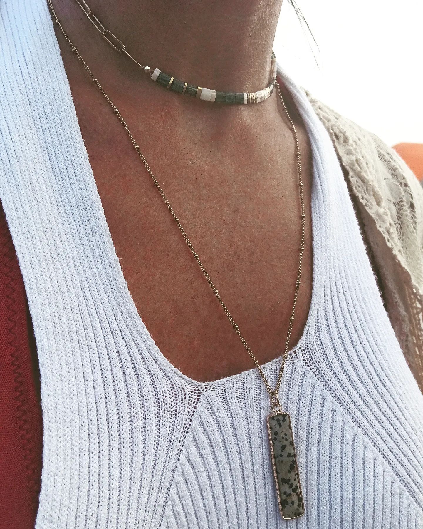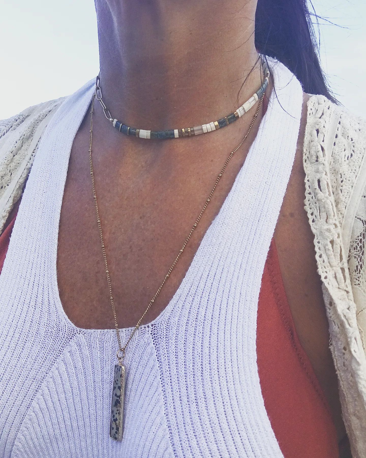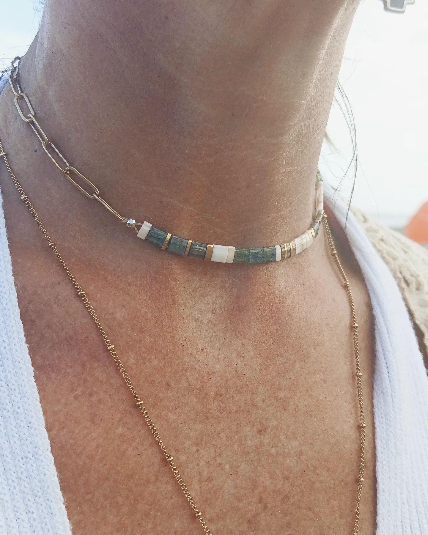 Collar cristal japonés con mitad de cadena eslabones en acero inoxidable con baño de oro 18 quilates