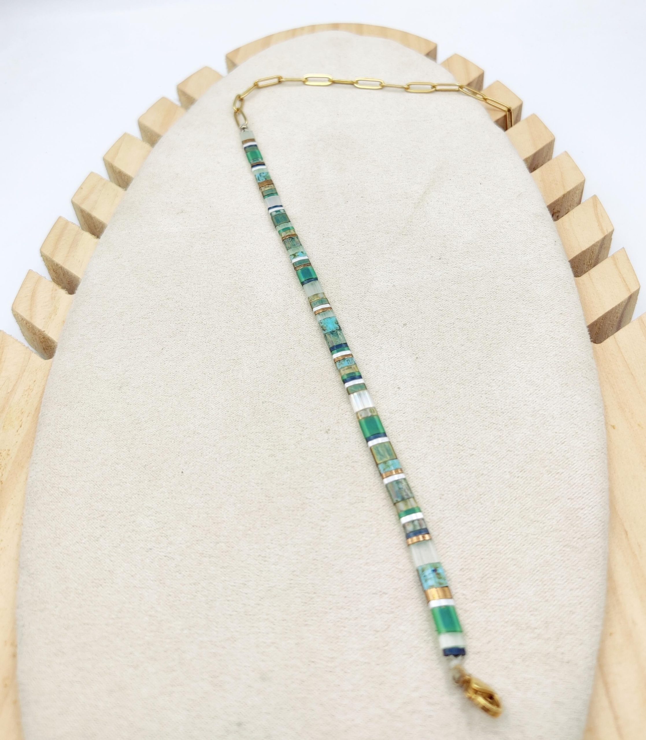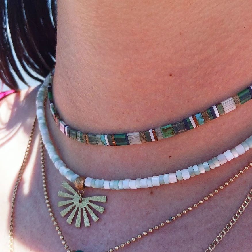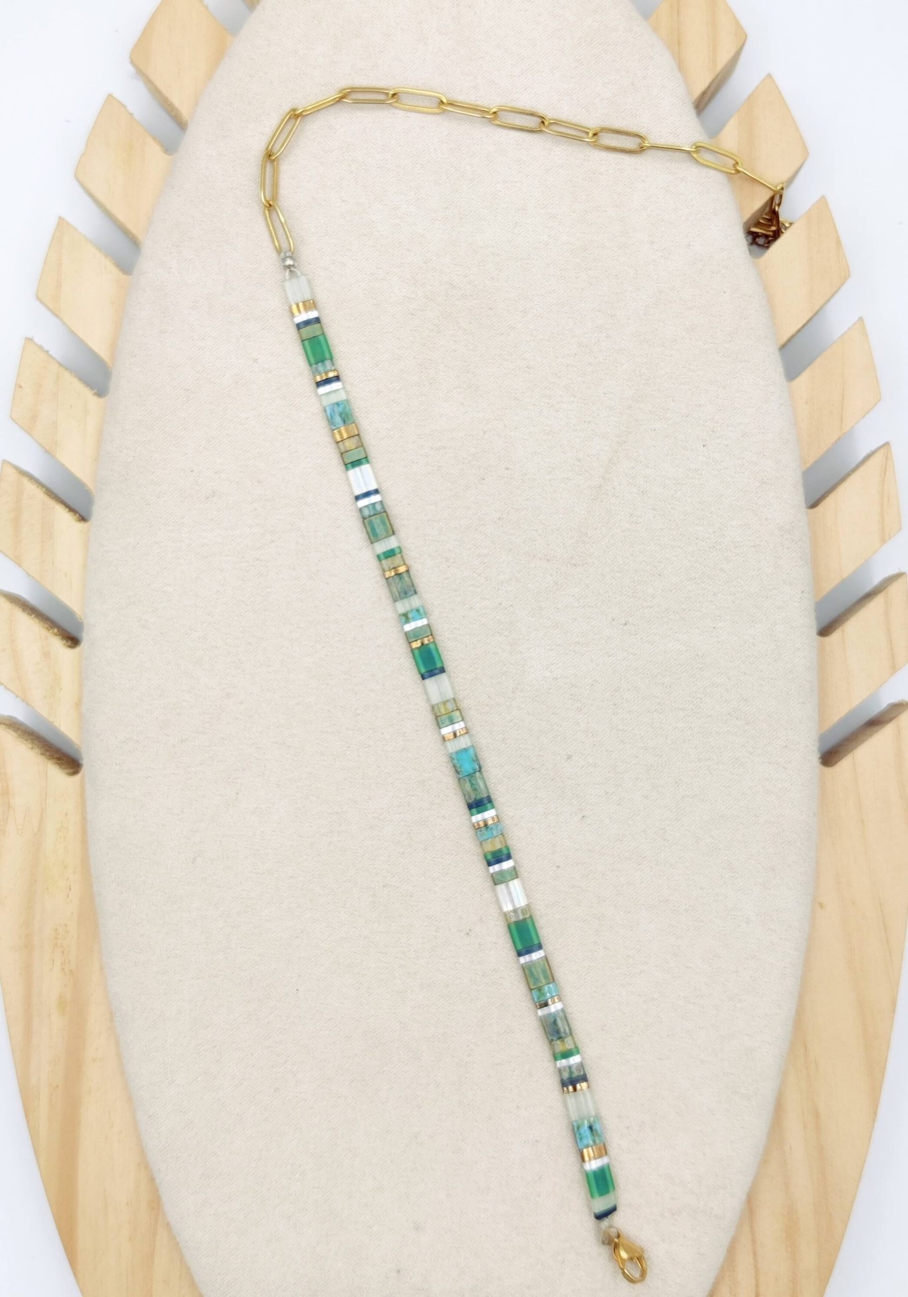 Collar cristal japonés con mitad de cadena eslabones en acero inoxidable con baño de oro 18 quilates