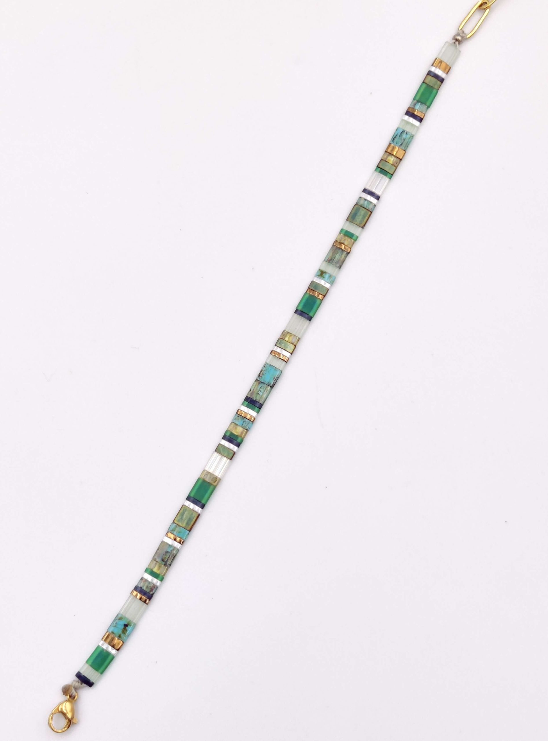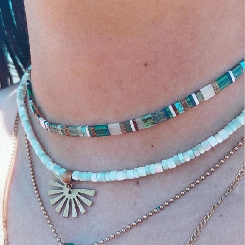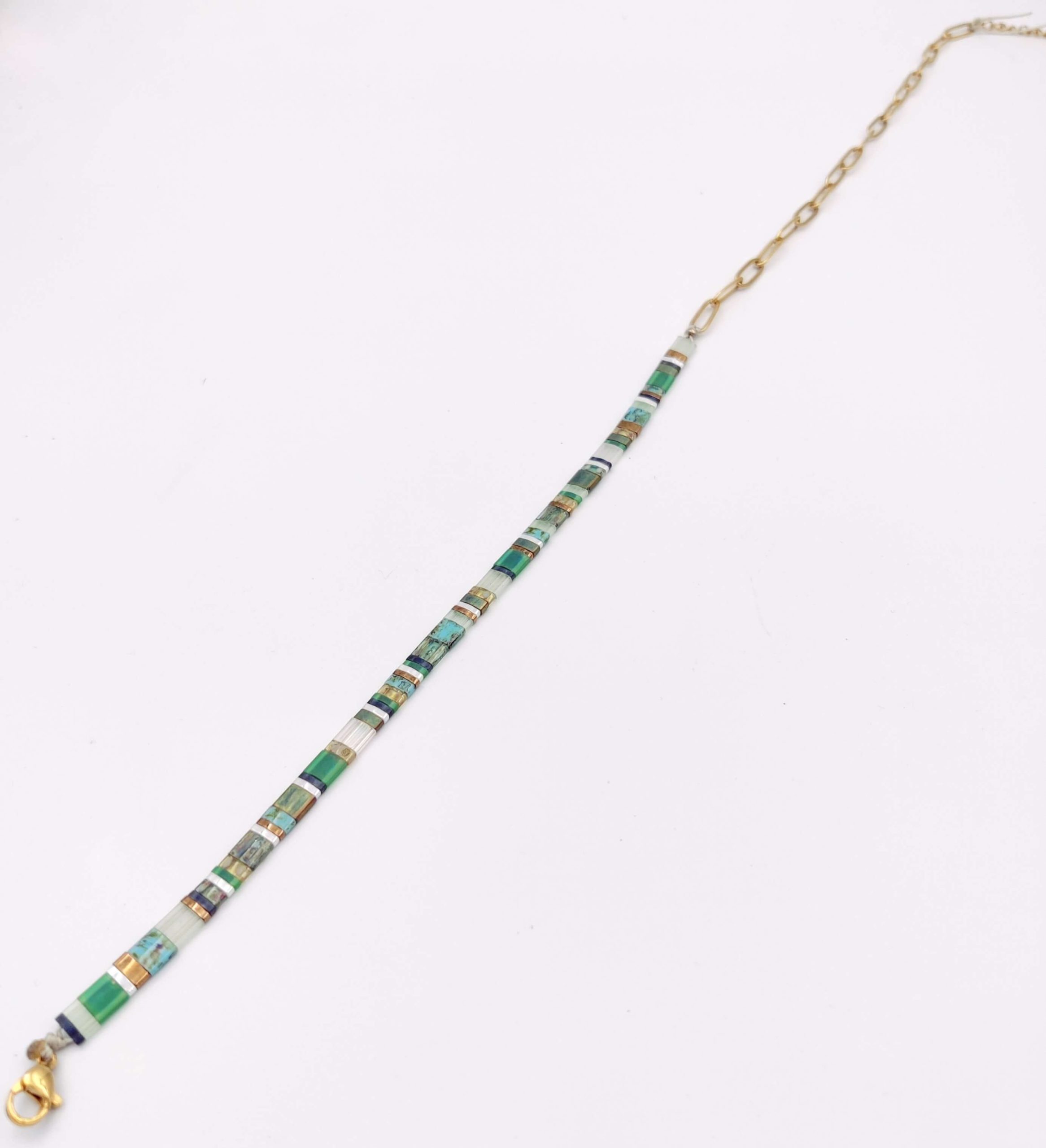 Collar cristal japonés con mitad de cadena eslabones en acero inoxidable con baño de oro 18 quilates