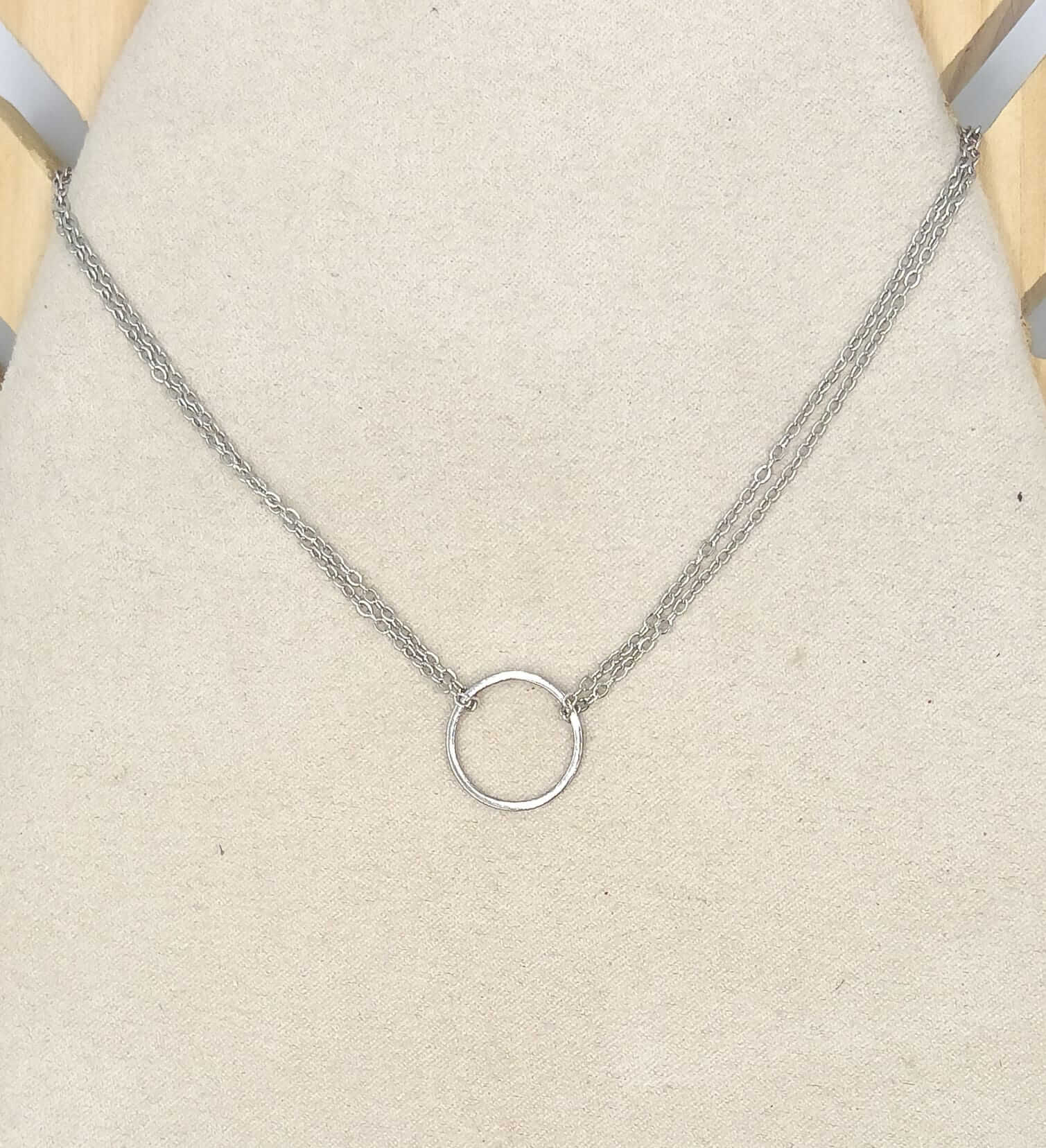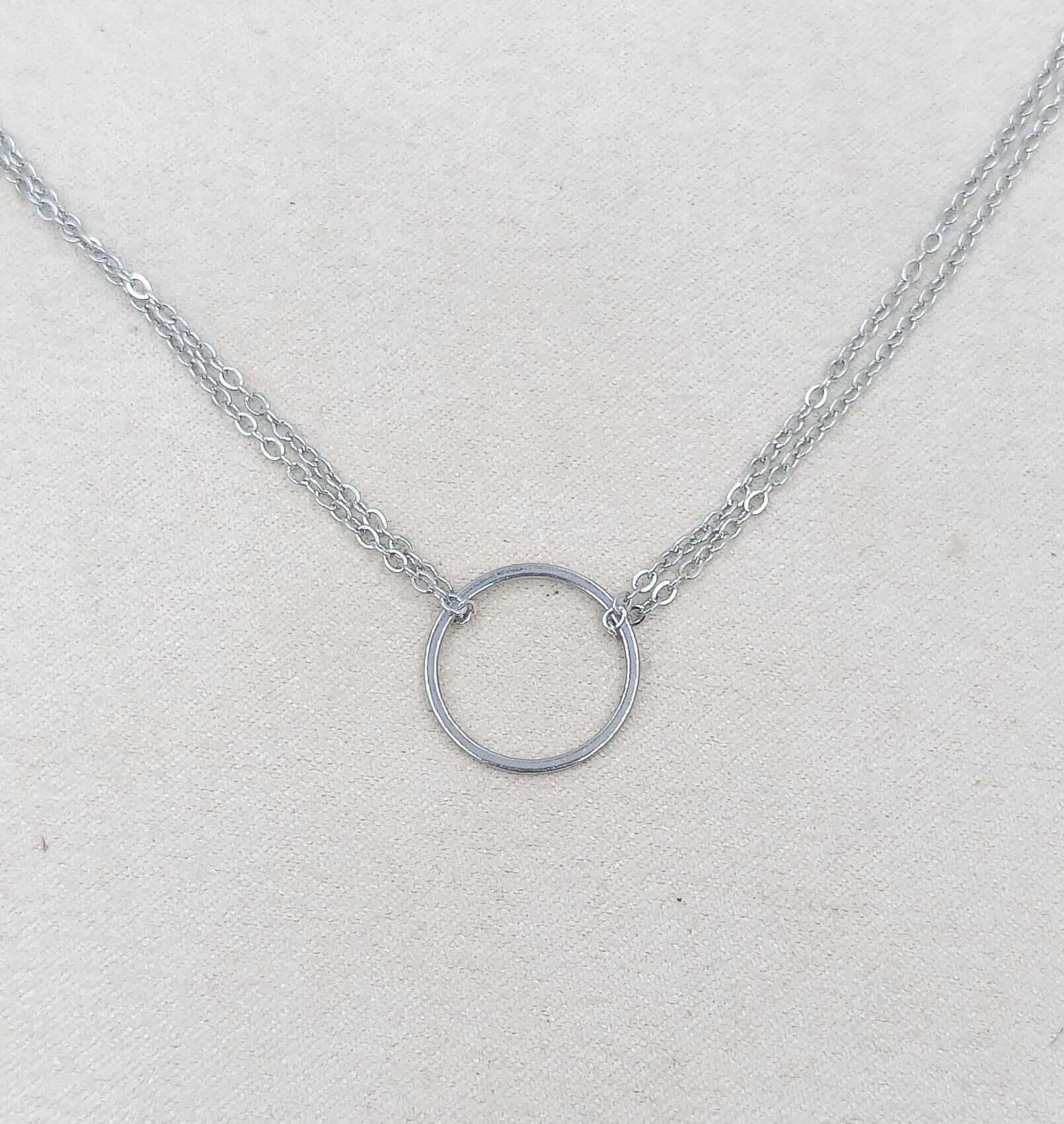 Collar Karma en acero inoxidable con o sin baño de oro 18 quilates Medida 38 cm + cadena de alargue de 5cm Medida del Dije Circulo 1,5cm diámetro