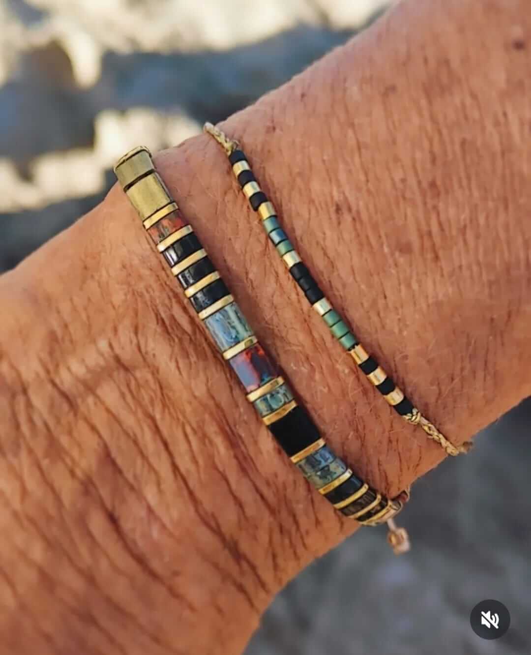 Combo Egypto. 1 Pulseras Cristal Japones y 1 Pulsera Minimalista con nudo corredizo regulador de medida. Talle unico