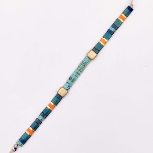 Pulsera Cristal Japones Czech Bronce Coral Verde Tornasolado