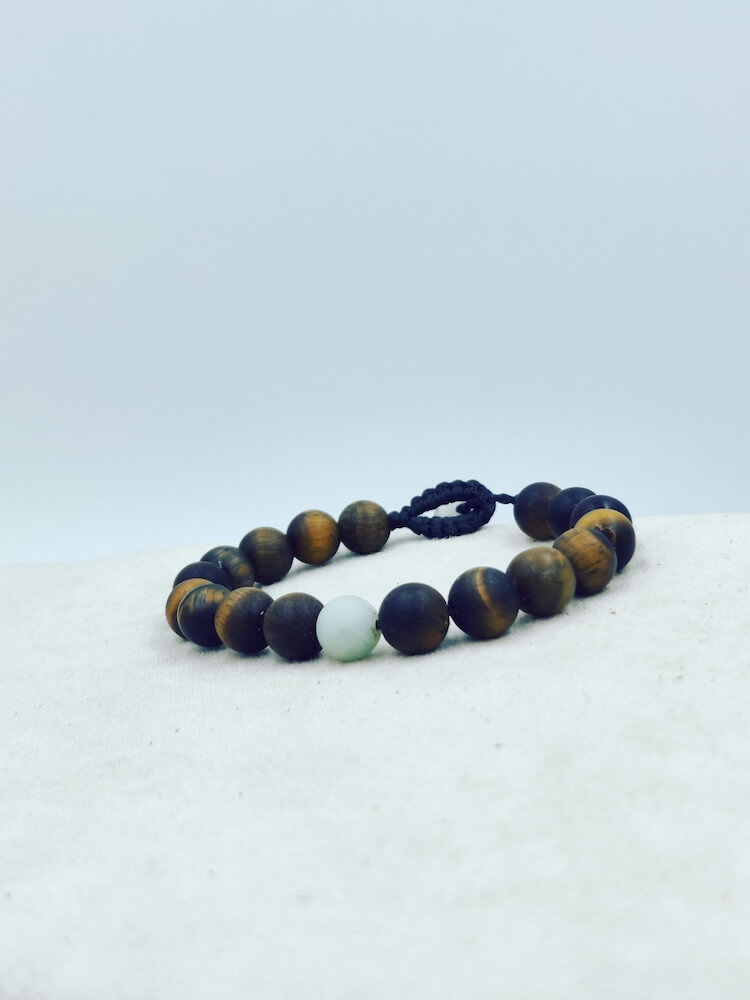 Piedras: Ojo de Tigre Mate, Amazonita (puede variar su tonalidad entre verdes, celestes y blancos)