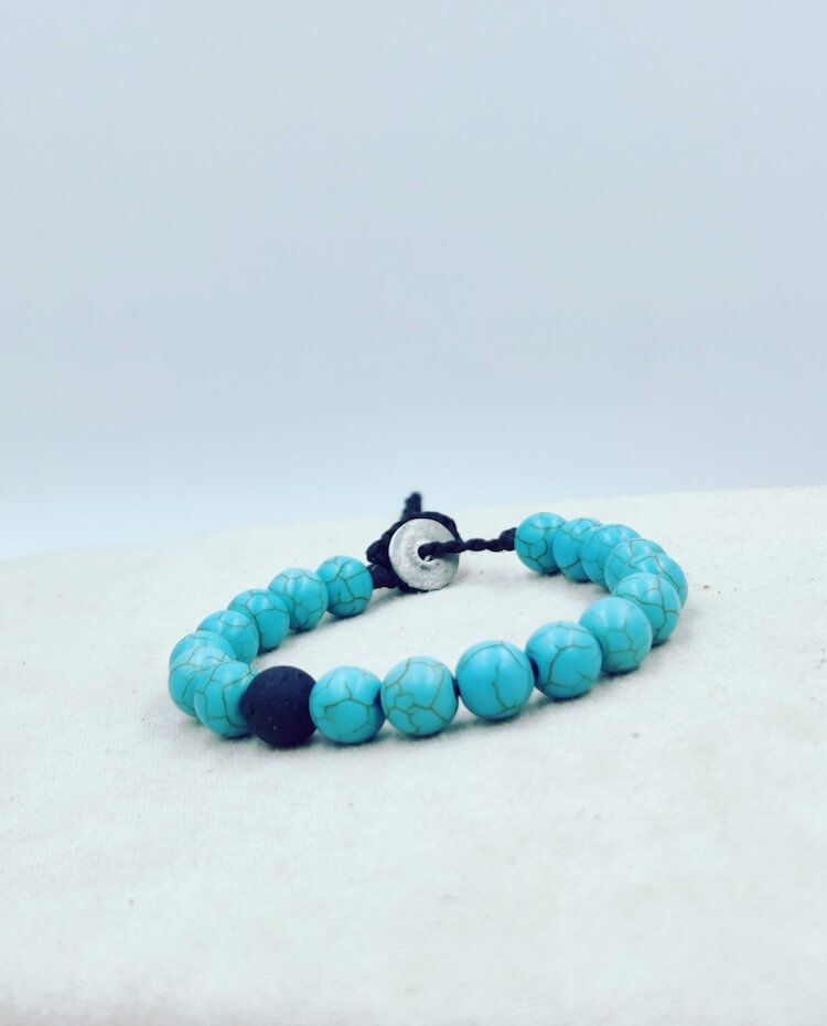 Pulsera de Piedra Natural de 8mm diámetro enhebrada en hilo encerado muy resistente. y con cierre de botón y ojal, talle única